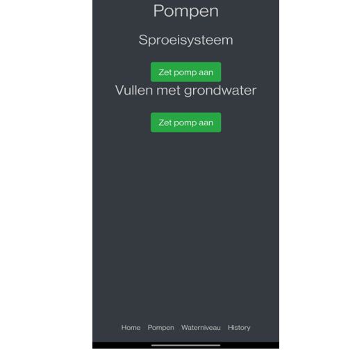 Binnen dit project hebben we gebruikt gemaakt van een RaspberryPi om de verschillende pompen aan te sturen en om met een ultrasone sensor het water niveau te meten. Dit alles moest gepaard gaan met een smartphoneapplicatie waar we de limieten van 'te vol' en 'te leeg' konden aanpassen deze waardes werden dan via pubnub naar de RaspberryPi gestuurd. We hadden ook een real-time weergave van het waterpeil en een geschiedenis waarin we het waterniveau van de afgelopen dagen konden bekijken. Via de app kon je ook beide pompen hand matig aansturen.